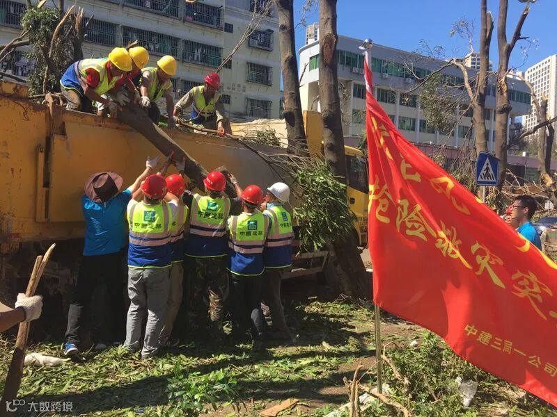 台风过后屹立不倒的是我们横琴IFC项目楼层上的四个大字“中建三局”,以及我们恢复临建、恢复水电和恢复生产的毅力和决心。灾难过后,心系我们的是局、公司、分公司各级领导,他们在第一时间到达项目现场,给予我们慰问与帮助。