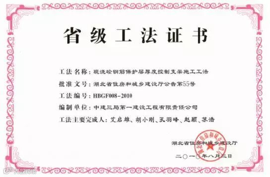 2010年成功通过湖北省省级工法审核