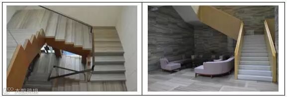 楼梯踏步尺寸准确,面砖平整;栏杆庄重、美观、实用。
