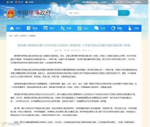 3月28日,港珠澳大桥珠海口岸项目顺利完成竣工验收,各路媒体闻讯纷至沓来,以视频、图文方式报道此消息。