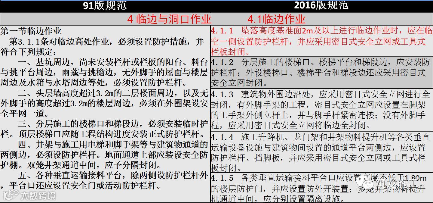 6、取消了原“高处作业安全防护设施的验收”章节,部分相关条款加入“基本规定”章节;