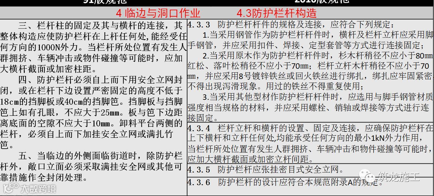 3、将“临边和洞口作业”中对护栏的要求归纳、整理,统一对其构造进行规定;