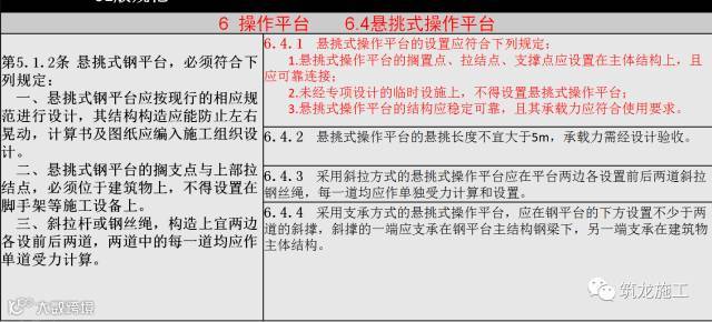 6.4.1 悬挑式操作平台设置应符合下列规定: