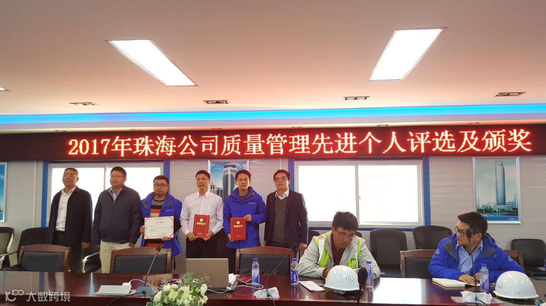 长隆科学馆项目技术负责人舒浩首先就该工程特点、施工重难点、总包管理及项目采取的应对措施进行了介绍,并分享了项目在施工过程中总结的管理经验;随后,各项目质检人员分别就2017年度质量方面工作的亮点及不足进行汇报;最后,进行了珠海公司2017年度质量管理先进个人评选。