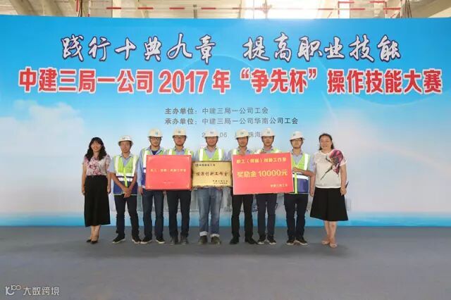 6月21日上午,中建三局一公司2017年“争先杯”操作技能大赛在华南公司珠海国际金融中心大厦项目举行。广东省总工会经济工作部部长田紫光,广东省工业工会副主席傅培德,珠海市总工会劳保部部长黄集区,中建三局工会工作部部长杨柳,中建三局一公司工会主席、副总经理周迎辉,中建三局一公司工会副主席牟金菊,中建三局一公司华南公司执行总经理党委副书记王飞等领导现场观摩指导。