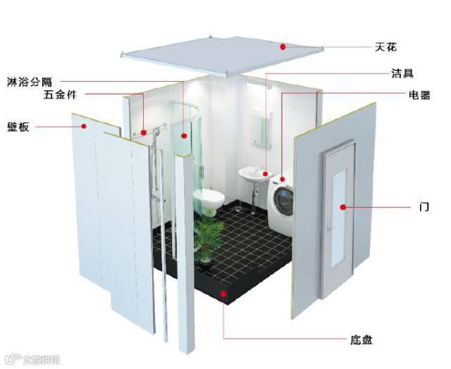 整体卫浴是相比传统砌装卫浴房间而言的,是采用工厂预制,直接拼装或现场吊装的现代建筑产品。整体卫浴间的底盘、墙板、天花板、浴缸、洗面台等大都采用复合材料制成,卫生环保;整体卫浴间中的卫浴设施均无死角结构而便于清洁。具有省事省时、结构合理、材质优良等优点。