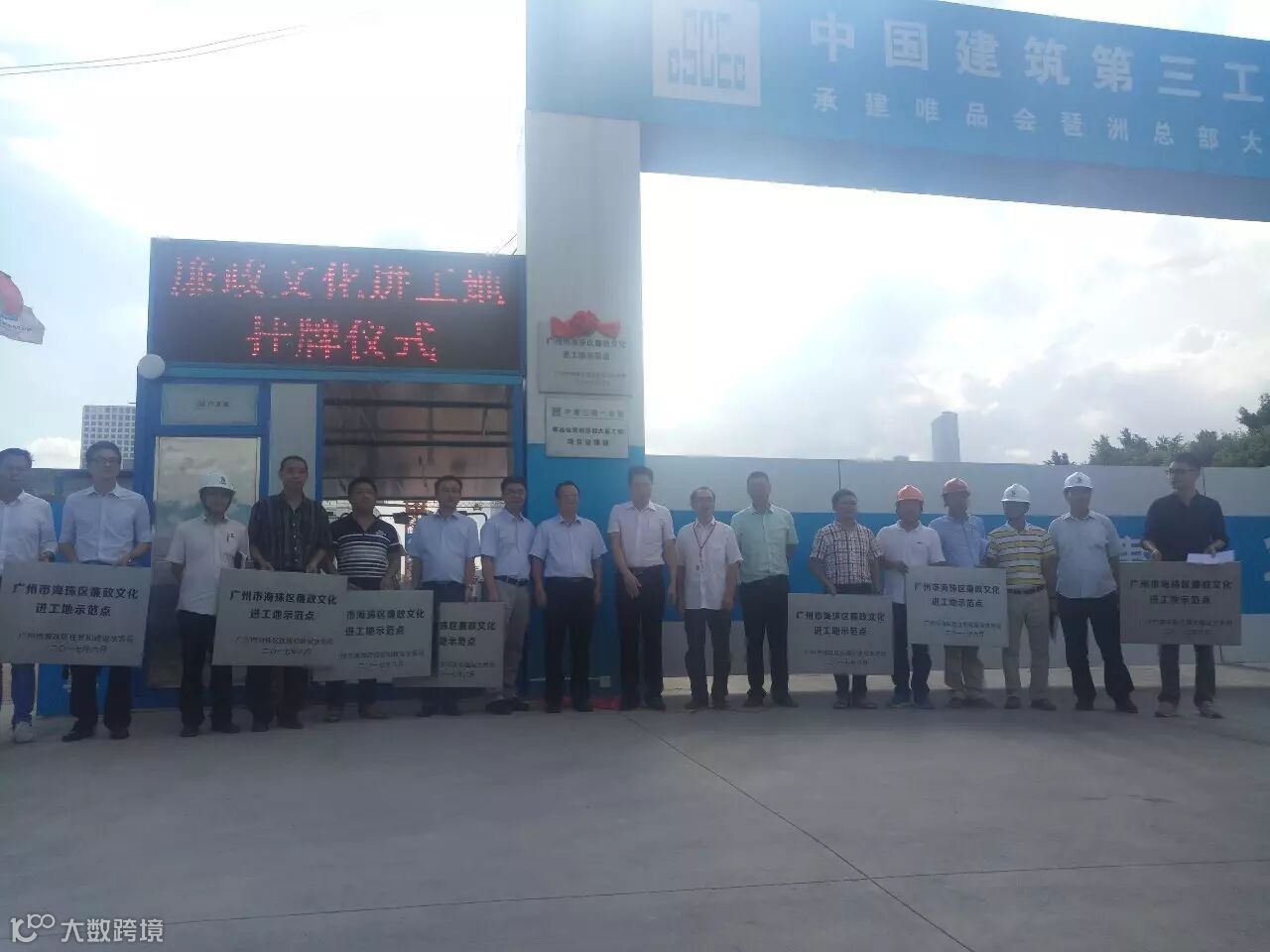 近日,广州琶洲互联网创新集聚区廉政文化进工地签约挂牌仪式在唯品会琶洲总部大厦项目举行。海珠区纪委副书记、区监察局局长雷兆阳、区住房和建设水务局局长陈伟锋、区纪委派驻区住房和建设水务局纪检组组长黄绍、区纪委党风政风监督室主任宋芳,以及集聚区在建项目的建设、施工、监理单位相关负责人参加了活动。