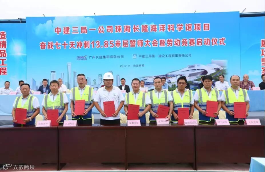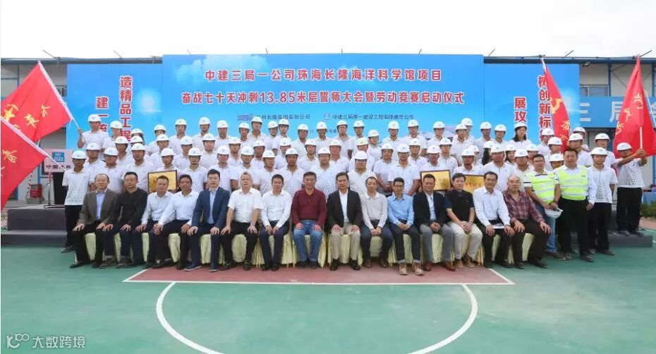 据悉,13.85米层是珠海长隆海洋馆项目如期履约的一个关键点,举办此次活动旨在贯彻落实党的十九大精神,以劳动竞赛为抓手,鼓舞工人士气,确保优质高效地完成长隆海洋科学馆各项施工任务。