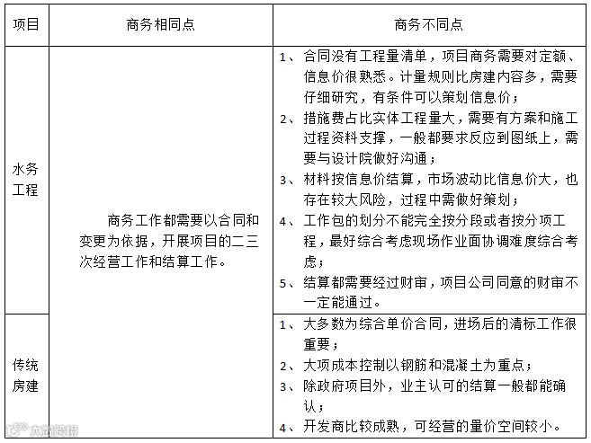 下面就漳州水务项目与传统项目的工程特点、管理重点、技术难点、商务要点、安全管理关键点五个方面的同与不同进行分析和总结,供大家一起研究和指正。