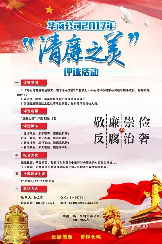 【争先华南】重要的事情说三遍!华南公司2017年“清廉之美”评选活动开始啦!