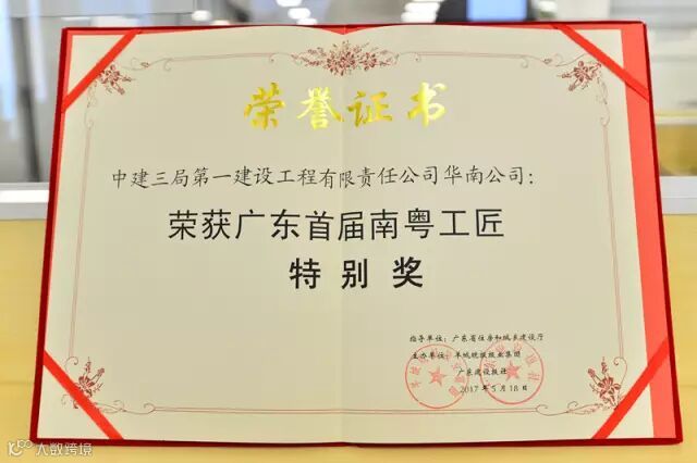港珠澳大桥珠海口岸、珠海横琴国际金融中心、福州京东方……中建三局一公司华南公司在建筑领域深耕细作30多年,一大批耀耀生辉的区域标志性建筑项目拔地而起。用业绩说话,以实力著称,强有力的彰显着企业品牌,南粤工匠特别奖实至名归。