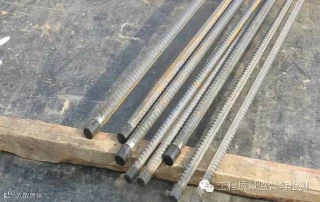 钢筋直螺纹连接:钢筋下料必须采用无齿锯切割,连接完毕后,套筒两端外露的完整有效丝扣不得超过1扣,不能出现肉眼可见裂纹,如出现必须切断重新连接;检查完的接头上用红油漆做出标记,以示自检合格,采用预埋接头时,带连接套的钢筋应固牢,连接套的外露端应有密封盖。