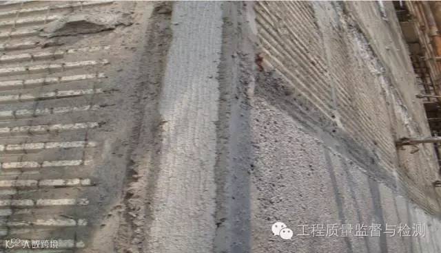 施工缝处理:墙、柱水平施工缝在墙、柱边线内再弹一道切割线,用无齿锯切割,切割深度3cm。柱、墙上顶水平施工缝按标高线往上5mm再弹一道切割线,进行切割。下图为框架柱柱头和柱根部处理。