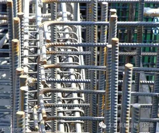 钢筋加工:I级钢筋末端需做180°弯钩,弯曲直径D取钢筋直径d的5倍,平直部分长度取钢筋直径d的5倍;箍筋弯钩135°、平直部分长度取10 d。钢筋定位钢筋端头应切齐、磨去飞边毛刺,端头刷防锈漆。