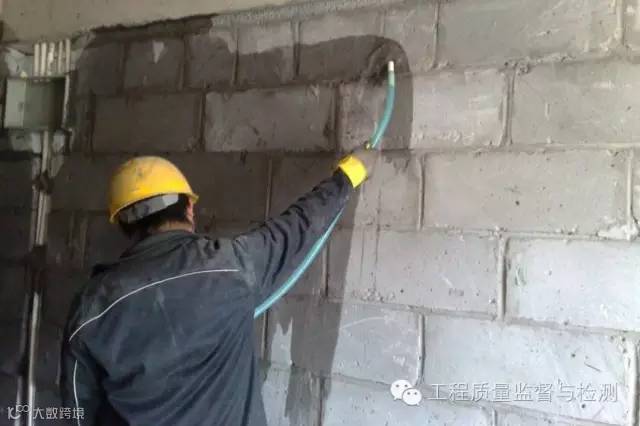 (1)加气混凝土砌块抹灰前先将墙面清理干净、润湿。