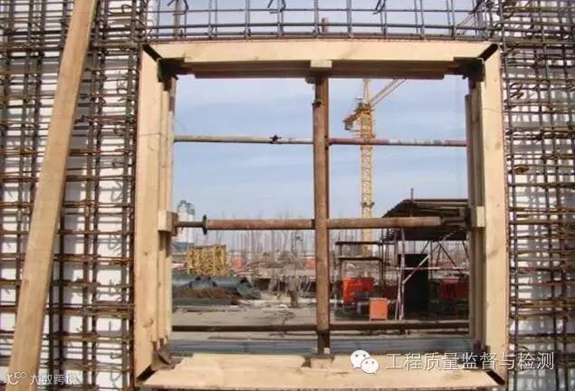 窗口支撑:木材宜采用不易变形的红白松,模板阴角和阳角用角钢与木模固定,同时洞口模板内加支撑。浇注混凝土时从窗两侧同时浇筑,避免窗模偏位。