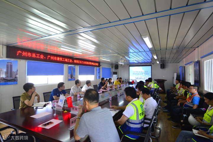 8月16日上午,广州市总工会生活保障部长杨霁、广州市建筑工地工会主席钟坚军、海珠区人大副主任、海珠区总工会主席黄向斌等一行10余人前往华南公司广州唯品会总部大厦项目调研并慰问一线工人。华南公司工会主席、纪委书记刘娟陪同。