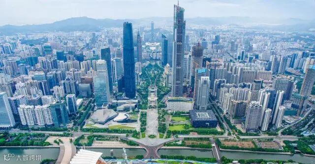 ▲在东塔顶层天台俯瞰广州城