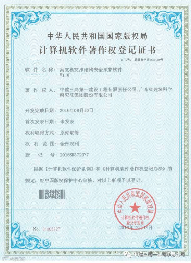 近日,由华南公司自主研发的《高支模支撑结构安全预警软件》获国家计算机软件著作权登记证书。该软件可根据项目高支模设计计算确定预警阀值,实现对高大模板支撑系统的模板沉降、支架变形和立杆轴力的实时监测;同时通过与集成化传感器、声光报警器的联动,对信号进行采集、分析和判断,实现对高支模施工安全监测的自动报警。