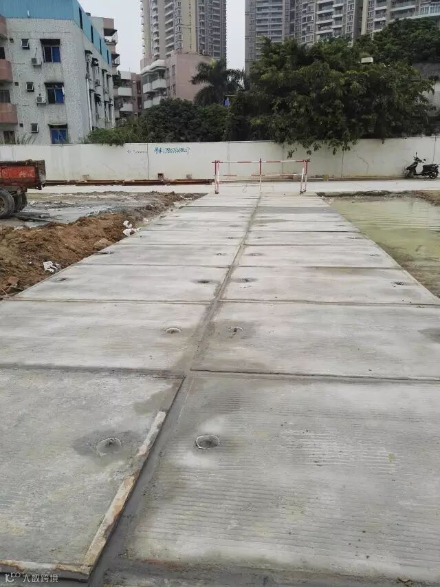 。另外,采用预制板铺设的施工道路具有足够的强度,可供各类大型机械设备及车辆行走;与传统施工道路相比,还能有效减少扬尘、泥泞等污染,使施工现场保持干净整洁,充分体现了绿色施工的理念。
