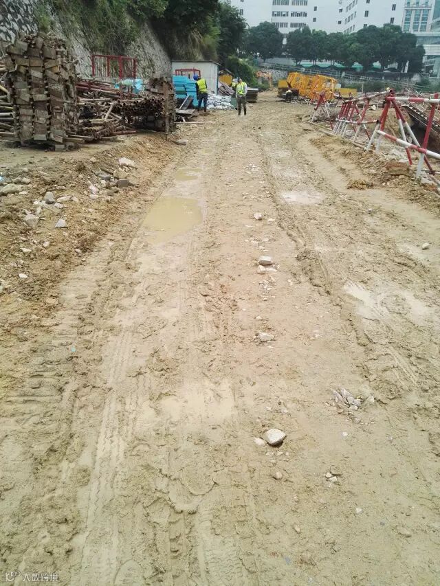 传统施工道路,易积水泥泞