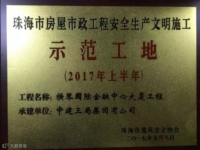 近日,珠海公司传来捷报,珠海横琴国际金融中心大厦工程荣获“珠海市2017年上半年房屋市政工程安全生产文明施工示范工地”称号。