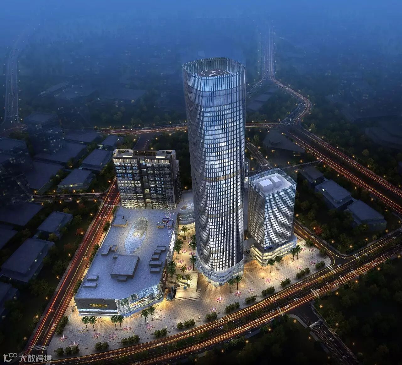 本工程占约5万平方米。地下五层、地上由一栋办公楼、一栋公寓、一栋高级酒店及商务酒店组成。