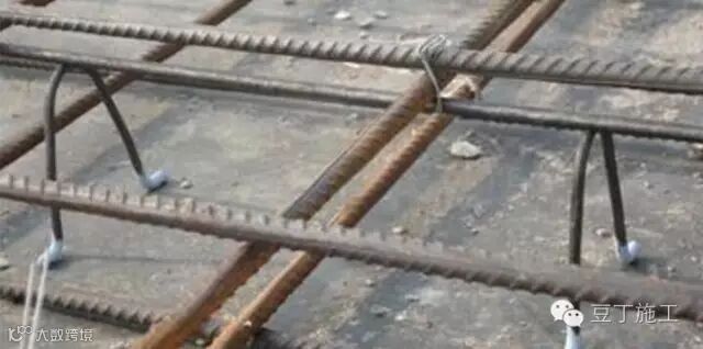 马凳排列可按矩形陈列也可梅花放置,一般是矩形陈列。马凳方向要一致。有一些不正规施工单位为了省钢筋不是用马凳固定板钢筋而量用其它硬物如石子、垫块、木块、塑料等充当马凳功能,这是没有专业性的野蛮施工。