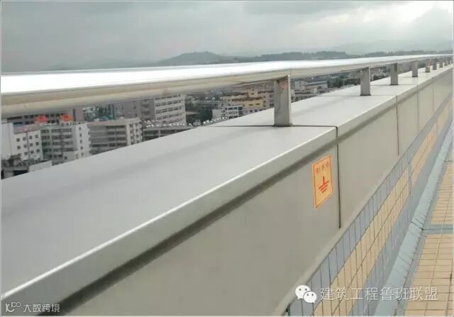 专家建议:支撑点与避雷网不用焊接方式,用比镀锌园钢略大一点的套管制作卡具,镀锌后安装在女儿墙上,其一、让镀锌园钢穿过去其减少焊点,保护镀锌层,增加使用寿命。其二,可让避雷网自由伸缩。