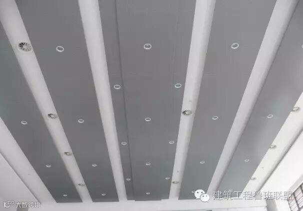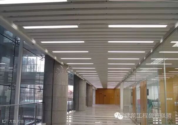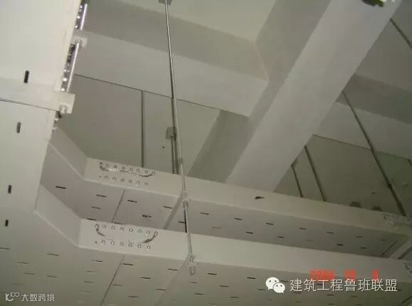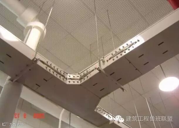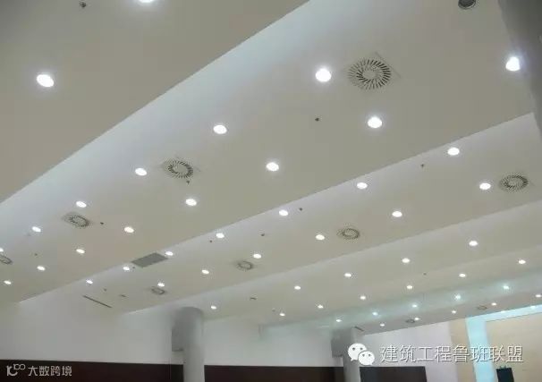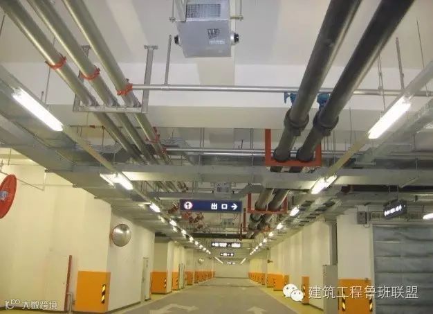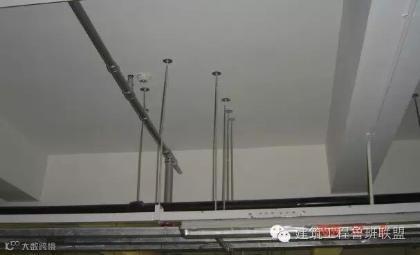 吊顶内的安装是鲁班奖必查的环节,顶棚以上管线末端,除了按地下室布局要求,整齐有序,支架设置合理外,末端器具与吊顶装饰的配合是十分关键的工序。在安装管线时,就应该考虑到灯具、喷淋头、烟温感器、喇叭、摄像头等等电器具出头的地方,以便在做顶棚时,做到居中对齐,不损伤吊顶龙骨。有些灯具还须加吊点,做到安全可靠。