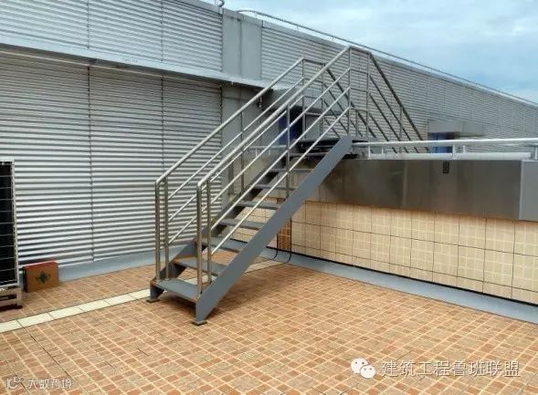 · 屋面管道、设备、避雷系统二次设计,综合布局,与土建密切配合,统一策划,制造亮点,起到画龙点睛的作用。屋面避雷设施随建筑形状弯曲,女儿墙上扣板压顶和不锈钢避雷栏杆,高度、出屋面排气管固定做法符合规范要求 ,跨隔断女儿墙设有钢梯,方便检修巡查。
