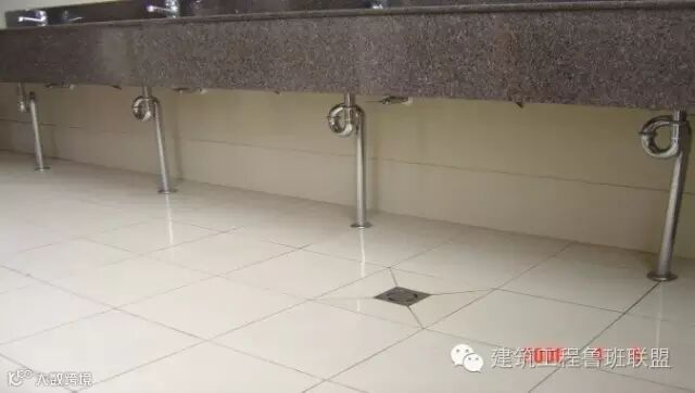 · 面盆下水管安装与装饰配合密切、有规律,正好对正地砖缝中;洁具安装牢固位置标高准确与装饰相协调。