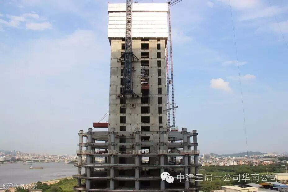 2014年10月28日,随着项目自主设计的智能顶模系统缓缓开始第一次爬升,施工现场一片欢呼。它如同一个“移动车间”,楼房修至哪一层,车间便移至哪一层,大大提升施工效率。托起顶模的是一支管理人员与劳务工人并肩作战的团队,每个人都是“拼命三郎”。