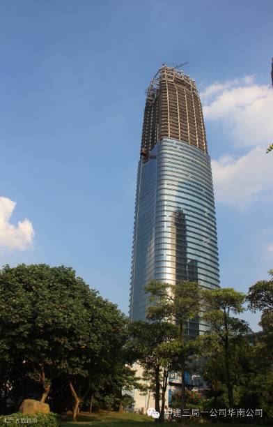 保利“天目塔”冠顶的高度区间为280.5米—311米,总垂直高度30.5米,采用弧线型钢管交错焊接而成,并随体型上升进行收分,在接近冠顶部分向中心弯曲靠拢,局部镂空形成特色鲜明的冠顶,圆形的建筑角部处理实现了室内空间最大化,其具体功能以企业会所、员工健身中心、媒体发布会等为主。业主、总包、设计、监理及各分包单位齐心协力,攻克了钢构深化节点多、异形结构构件加工制作难度大、异形构件安装精度高及安装难度大等诸多难题,顺利完成塔冠结构合拢封顶。