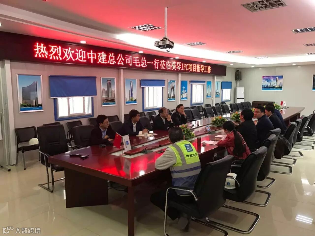 近日,中建总公司总工程师毛志兵一行检查指导华南公司珠海横琴IFC项目“智慧工地”实施情况,公司总工程师楼跃清及华南公司总工程师寇广辉陪同检查。