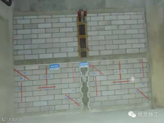 砌筑:轻质砌块底部要求三匹实心砖或者灌芯的混凝土小型空心砌块,二次结构封模前贴双面胶防止漏浆,封顶砖斜砌砂浆饱满
