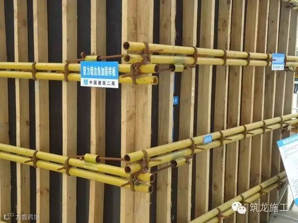 钢管竖向间距600,另设置对拉螺杆,加固剪力墙边角。