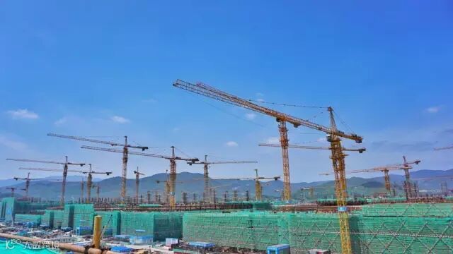 3座大型厂房拔地而起,41台林立的塔吊不停转动,数百台运输车辆有序穿梭,万名建设者紧张地忙碌……