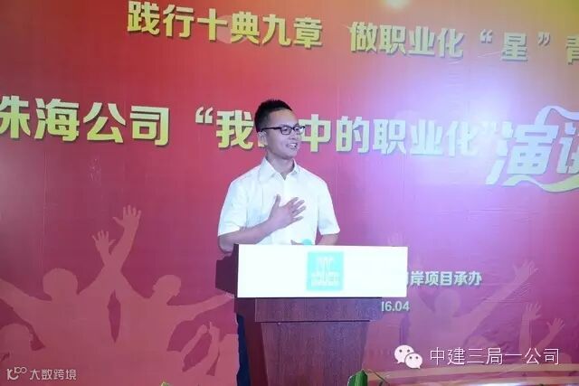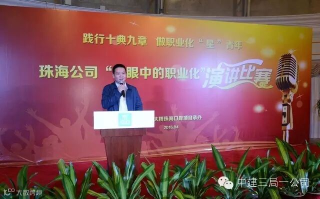 4月18日下午,为庆祝“五四”青年节的来临,展现中建三局一公司青年员工践行《十典九章》,扎根平凡岗位、积极向上的职业精神风貌,华南公司珠海公司举办了以“我眼中的职业化”为主题的大型青年员工演讲比赛。15位来自不同项目、不同岗位的青年“演说家”激情开讲,为广大职工带来一场激情四射的视听盛宴。