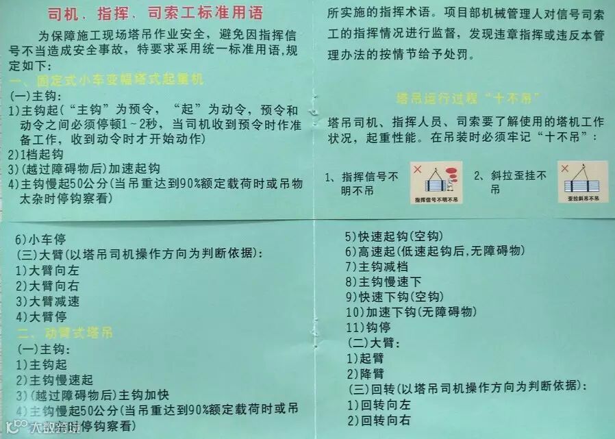本次培训旨在规避因塔吊作业人员沟通障碍问题而造成的安全风险。培训主要涉及固定式小车变幅塔式起重机指挥操作常用语、动臂式塔式起重机指挥操作常用语、固定式小车变幅塔式起重机组合动作标准用语,以及塔式起重机“十不吊”安全操作规程等。