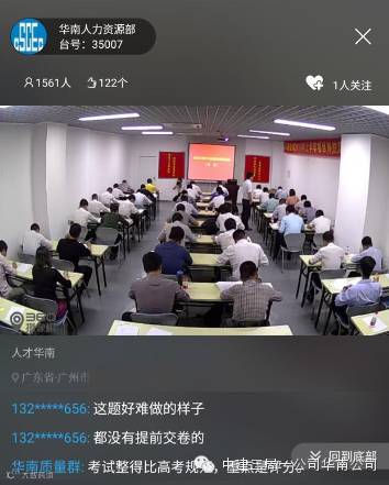 时下流行啥?网络视频直播!华南公司项目岗位竞聘就成功运用该技术实现了全过程直播、千人围观互动!无论您身处何地,通过电脑、手机等终端设备,就能亲临现场般,时时关注竞聘笔试、无领导小组讨论等环节的动态。围观网络的职工们惊呼道:“这也行!全民监考时代这么快就来了?”、“考试整得比高考还规范,必须点赞!”、“公平、公开、公正的选人用人机制,就当如此!”……