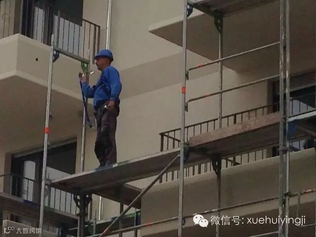 ▲ 工人每移动一步,都要先移动安全绳。