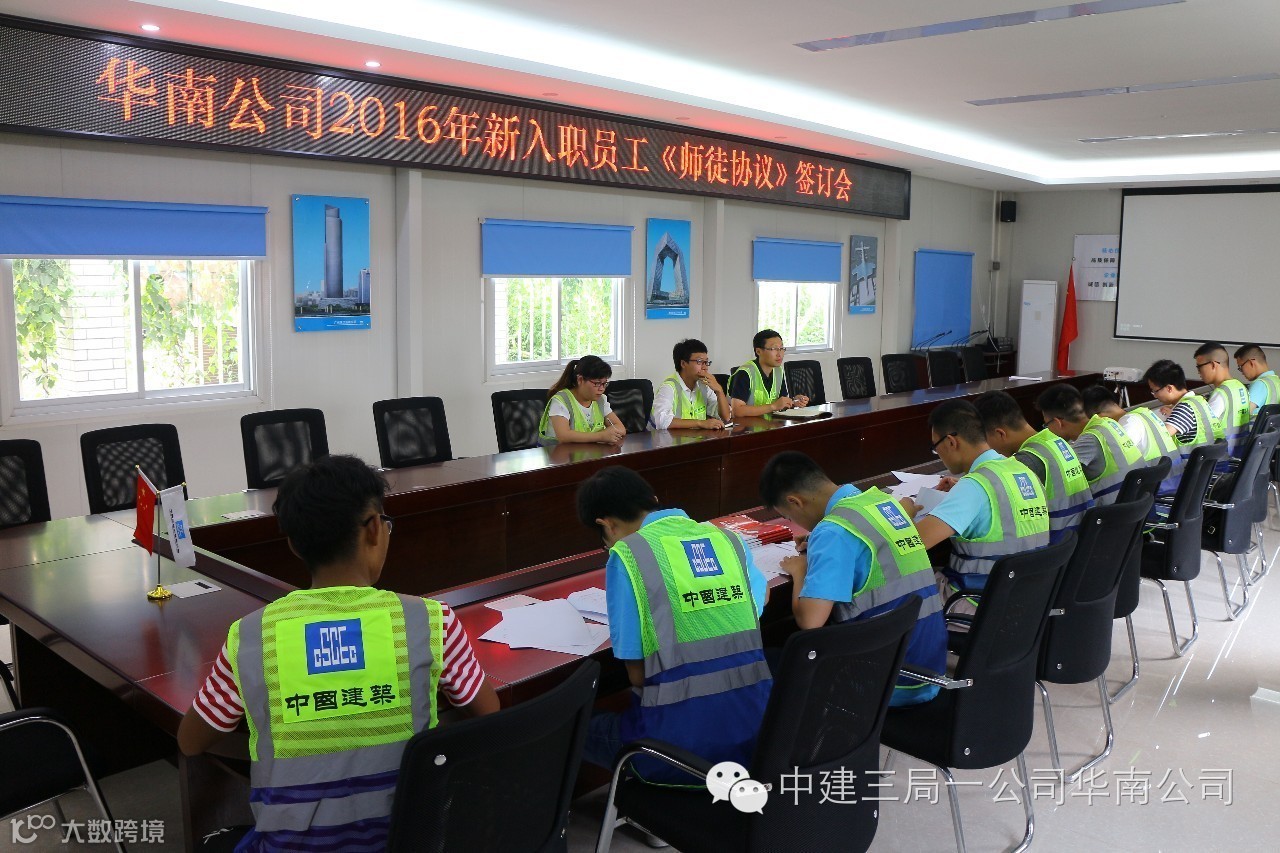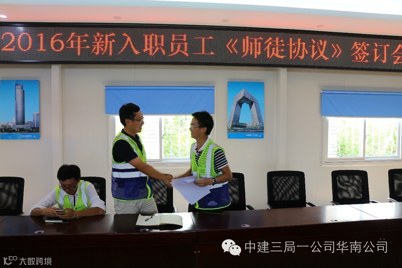 为帮助新员工尽快完成角色转换,迅速融入新环境,打造“人才华南”,7月25日,华南公司人力资源部在保利鱼珠、保利琶洲项目组织2016级新员工签订《师徒合同》。