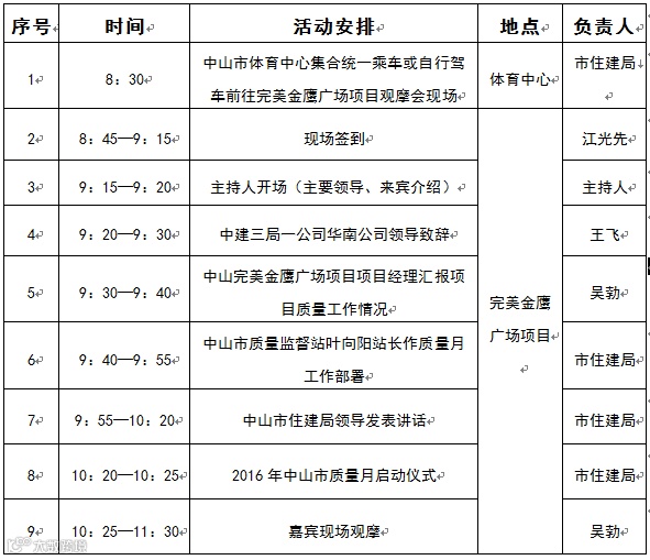 【先知为快】中山完美金鹰广场项目市质量观摩会会议议程及观摩路线图