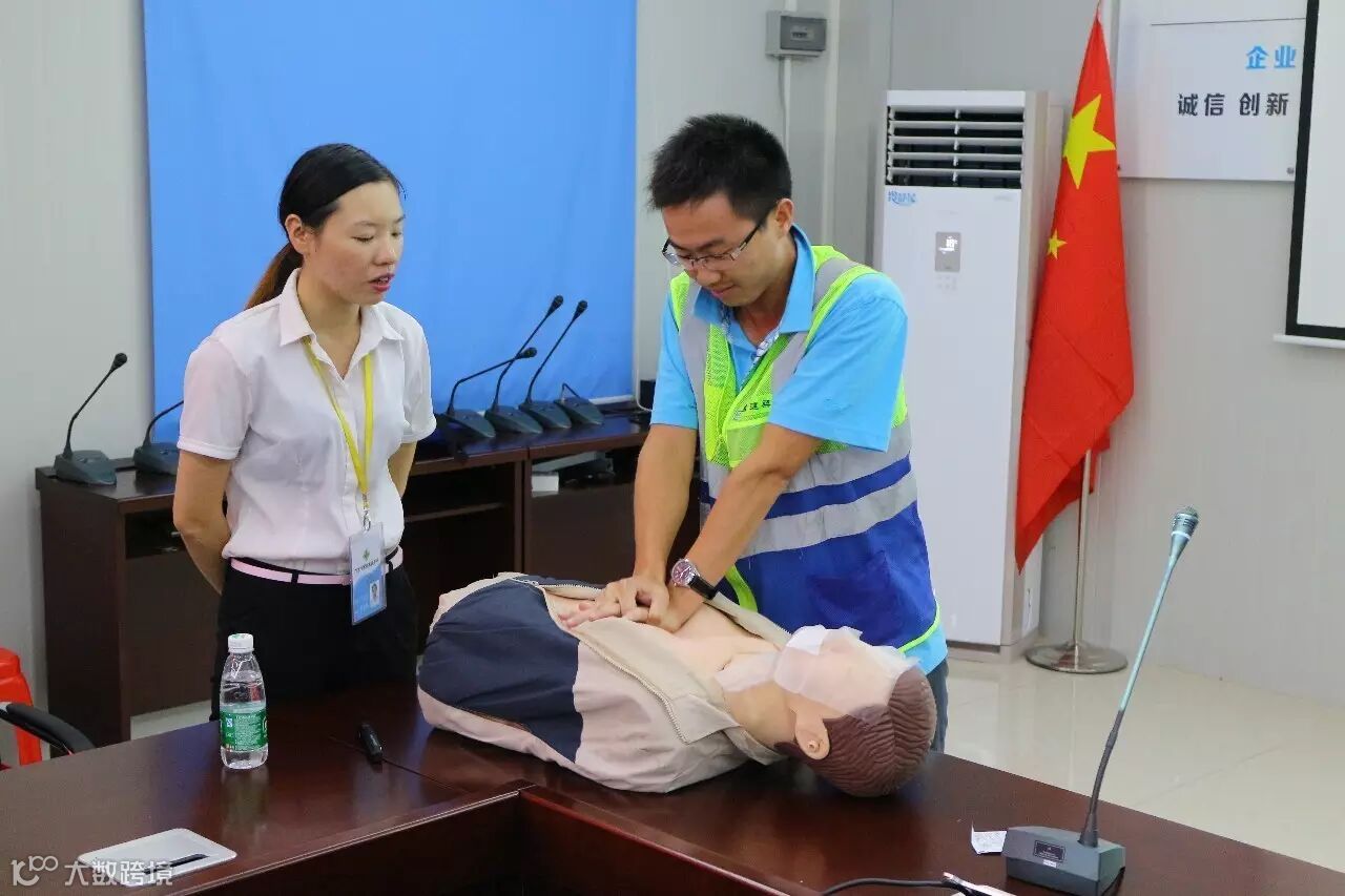 培训会上,来自广州市科普健康咨询服务中心的培训老师针对高温作业的施工安全、工伤意外事故、工作疲劳缓解的预防及急救方法等内容作了详细讲解。同时还结合视频和道具现场模拟了心肺复苏采用的胸位按压和人工呼吸的方法,模拟完成后邀请学员进行实际操作,并对其练习时的不当之处进行指导。