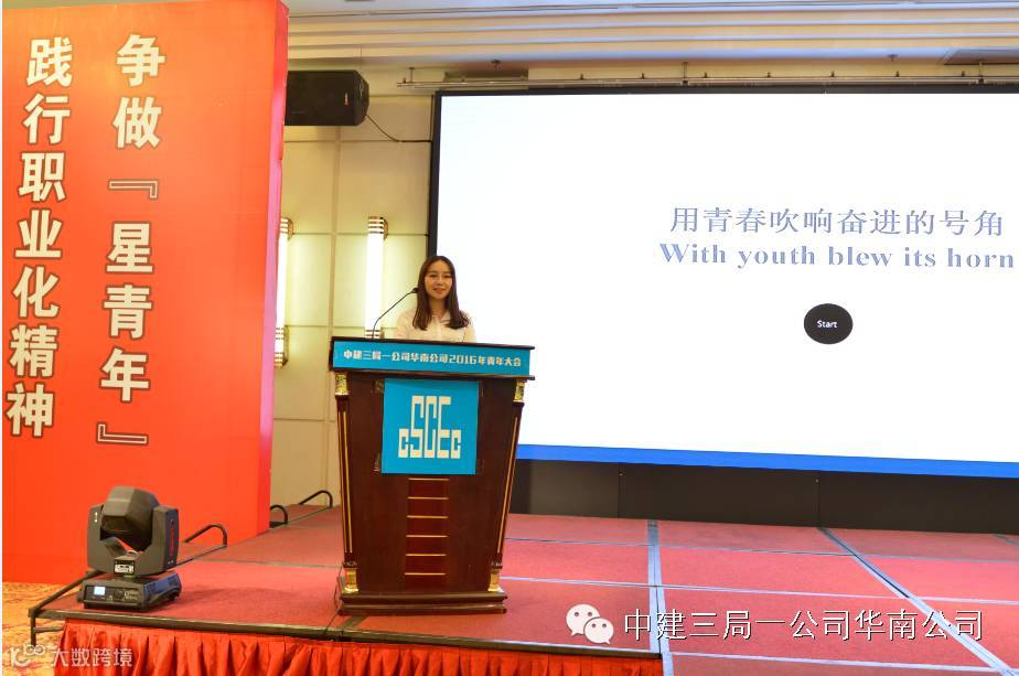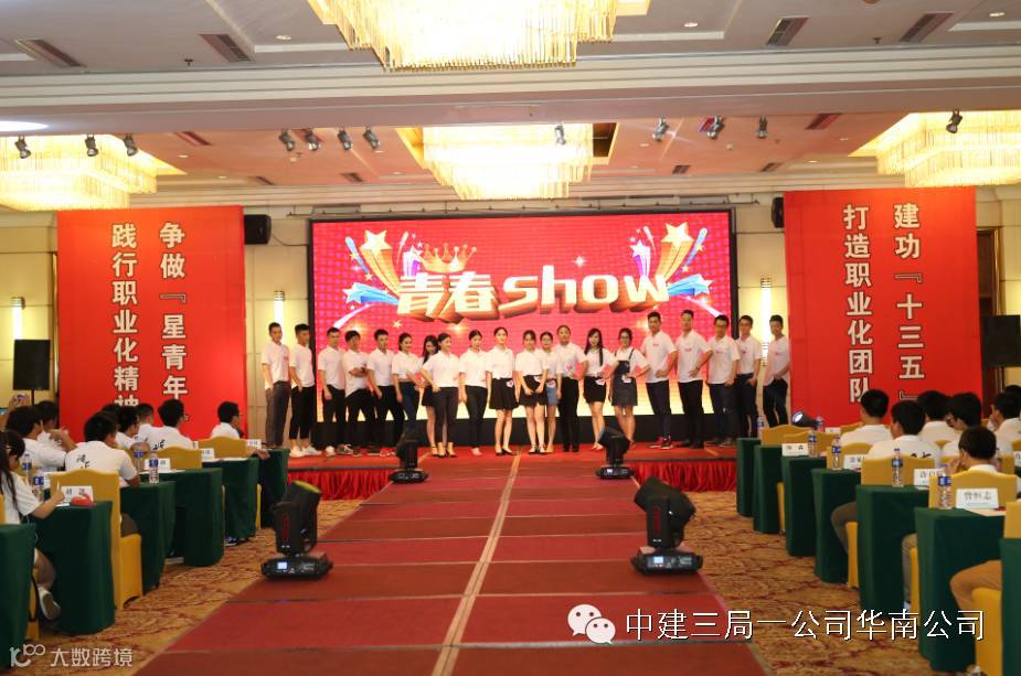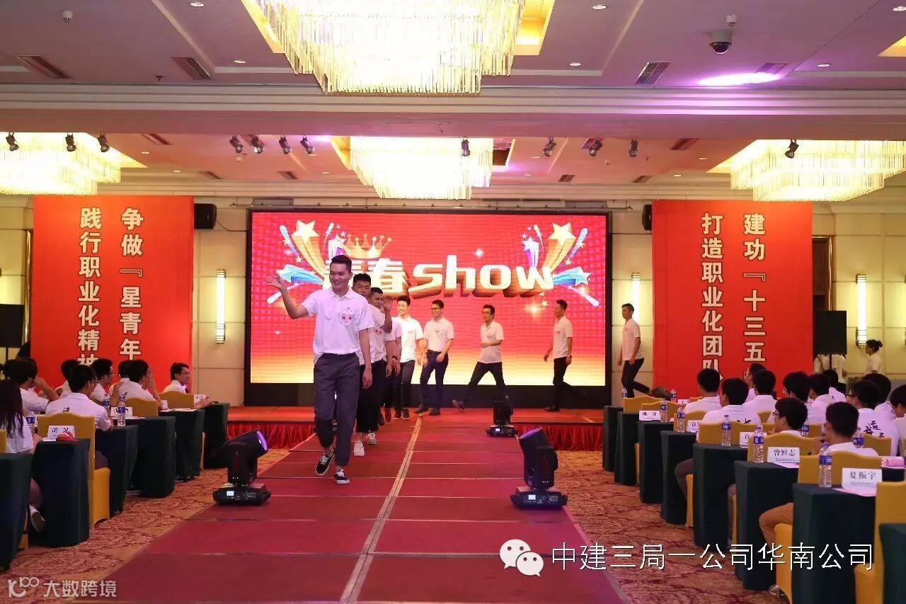 中建三局一公司华南公司在2016年5月6日举行的青年大会上,将舞台还给青年职工,参会领导们退居观众席,60后、70后的他们乐呵呵地当起了90后的“粉丝”。创意无限的潮男潮女们自然不会错过这么好的展示机会,他们积极发挥主观能动性,自编自导自演了这场活力四射的“青春show”,不仅show出了良好的职业化精神面貌,更show出了多彩的生活情趣和乐观的生活态度,颠覆了人们对工程建设者的认识。