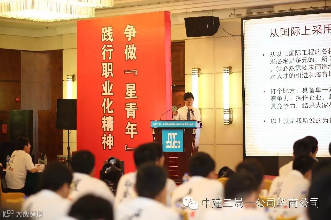 中建三局一公司华南公司总经理、党委书记夏元云代表华南公司领导班子向广大团员青年致以节日的问候和美好的祝愿,他号召大家以“争先”精神为指引,切实推动职业化团队建设,在本职工作中创造出第一流的成绩,为实现“五个华南”的美好愿景而不断努力奋斗!他对青年人提出五点希望:做先锋青年,以敢为人先的精神攻坚克难,铸就争先华南;做担当青年,以胸怀大局的视野勇担重任,铸就多元华南;做敬业青年,以精益建造的匠心抓好履约,铸就品质华南;做职业青年,以求真务实的作风履职尽责,铸就人才华南;做活力青年,以积极健康的心态感恩企业,铸就幸福华南。青年们认真倾听、倍感振奋,一股强烈的责任感和使命感油然而生。
