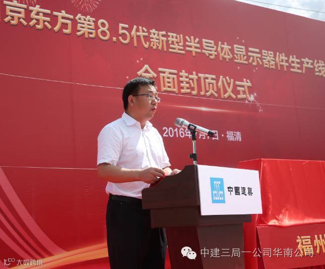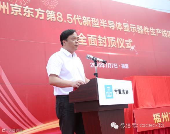 福清市委副书记、代市长张帆表示,福州京东方项目对福清市加快打造千亿电子信息产业集群、促进产业转型升级意义重大。他盛赞项目建设速度之快“刷新了‘福清速度’”。希望中建三局一公司以此次全面封顶为契机,再接再厉,攻坚克难,全面加快建设进度,争取项目早竣工、早投产、早见效。