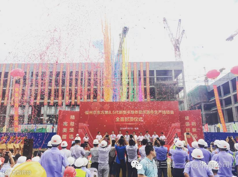 7月7日,“海上丝绸之路”最大电子洁净厂房之一——华南公司福州京东方第8.5代新型半导体显示器件生产线项目封顶!