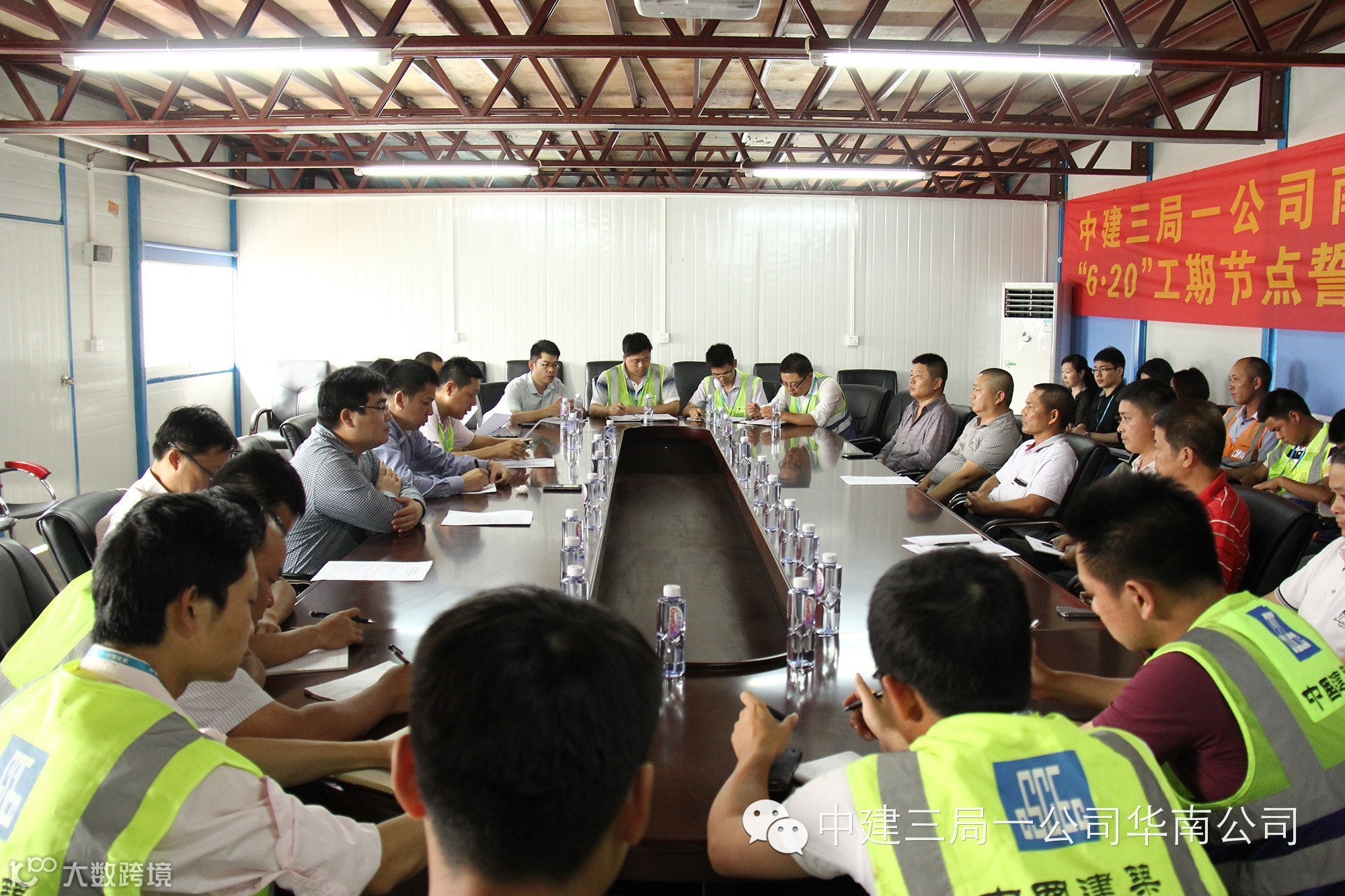 (通讯员 刘娟 王福临)4月3日,华南公司南沙滨海花园九期一区项目举行6.20工期节点誓师大会暨劳动竞赛启动仪式。华南公司党委副书记、工会主席梁永建、总工程师寇广辉、经理助理蒋向阳、项目全体管理人员、业主代表、监理代表及各专业分包代表,共计43人参加此次誓师大会。